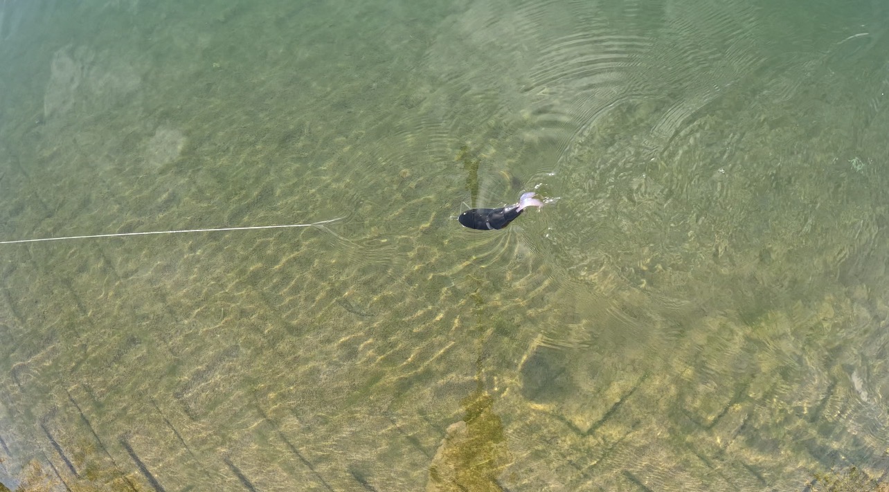 There are other ways to fish it as well, like twitching, popping, and crankdown. BUGWAKE can dive to about 2 feet, so you can also catch fish that won’t react on the surface by cranking over shallow flats. The only time I recommend fluorocarbon is when you feel a crankdown style fits the situation.